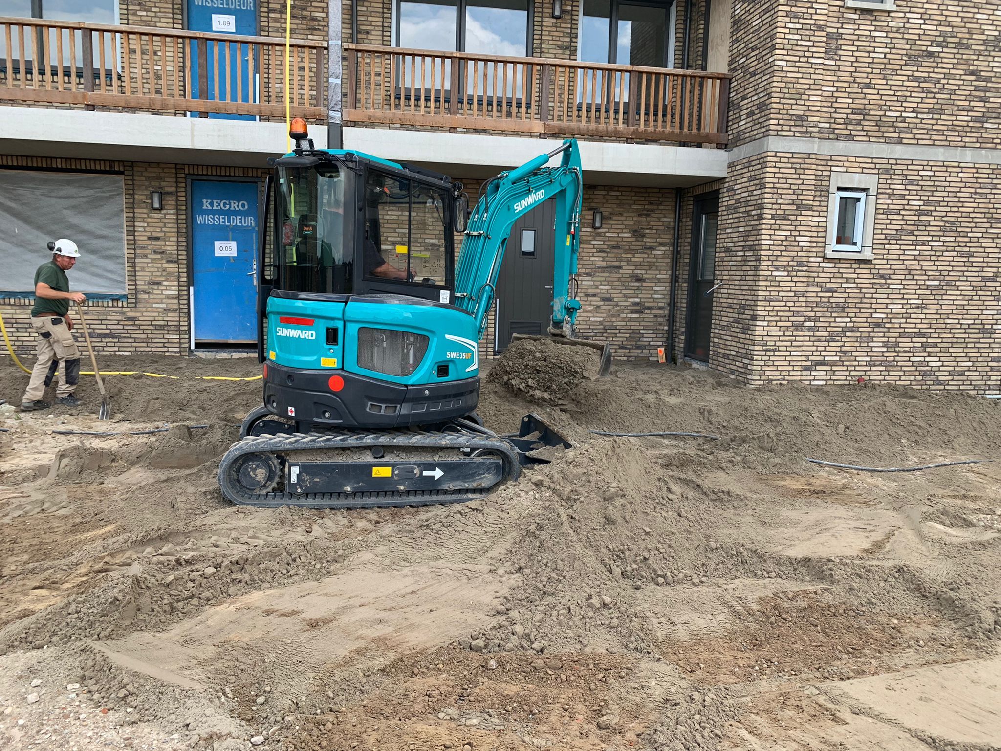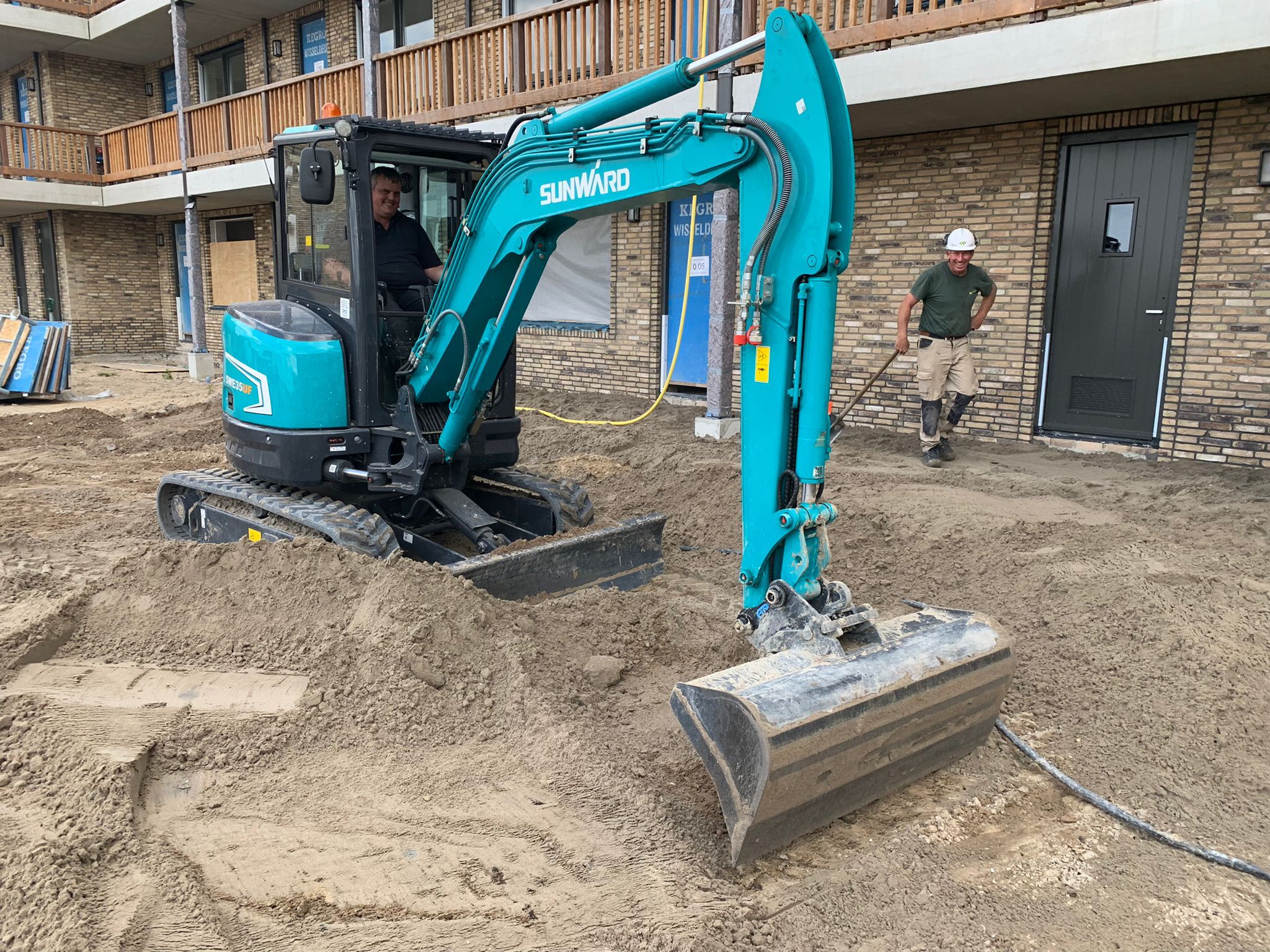 Optie 1: Deze Sunward SWE5UF heeft ± 200 uur gedraaid. De minigraver is te koop met 3 bakjes, sloop- sorteerfunctie, airco en opgebouwde koppelingen.